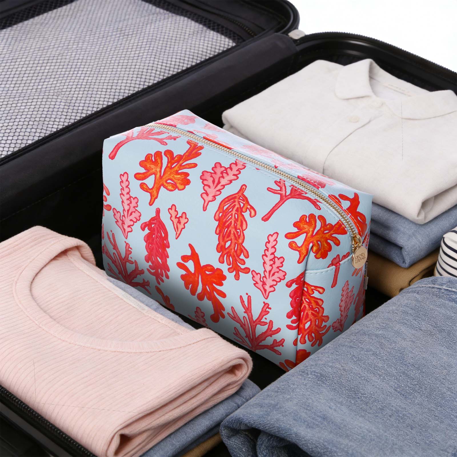 Story&Suns Vegan Leather Cosmetic Bag – Leaf & Coral Pattern Designs