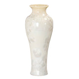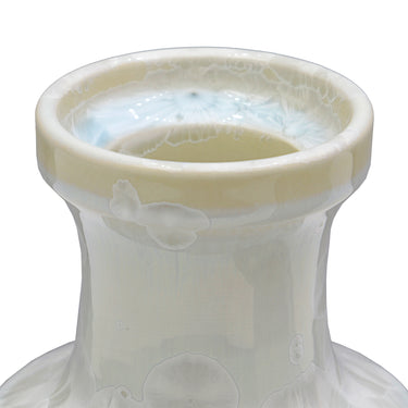 What makes this flower vase truly special is its mother of pearl–like crystalline glaze. During the high-temperature firing process, a natural chemical reaction creates unique crystalline patterns that resemble the iridescence of mother of pearl. No two pieces are ever alike, making every vase a work of art and a statement of individuality.