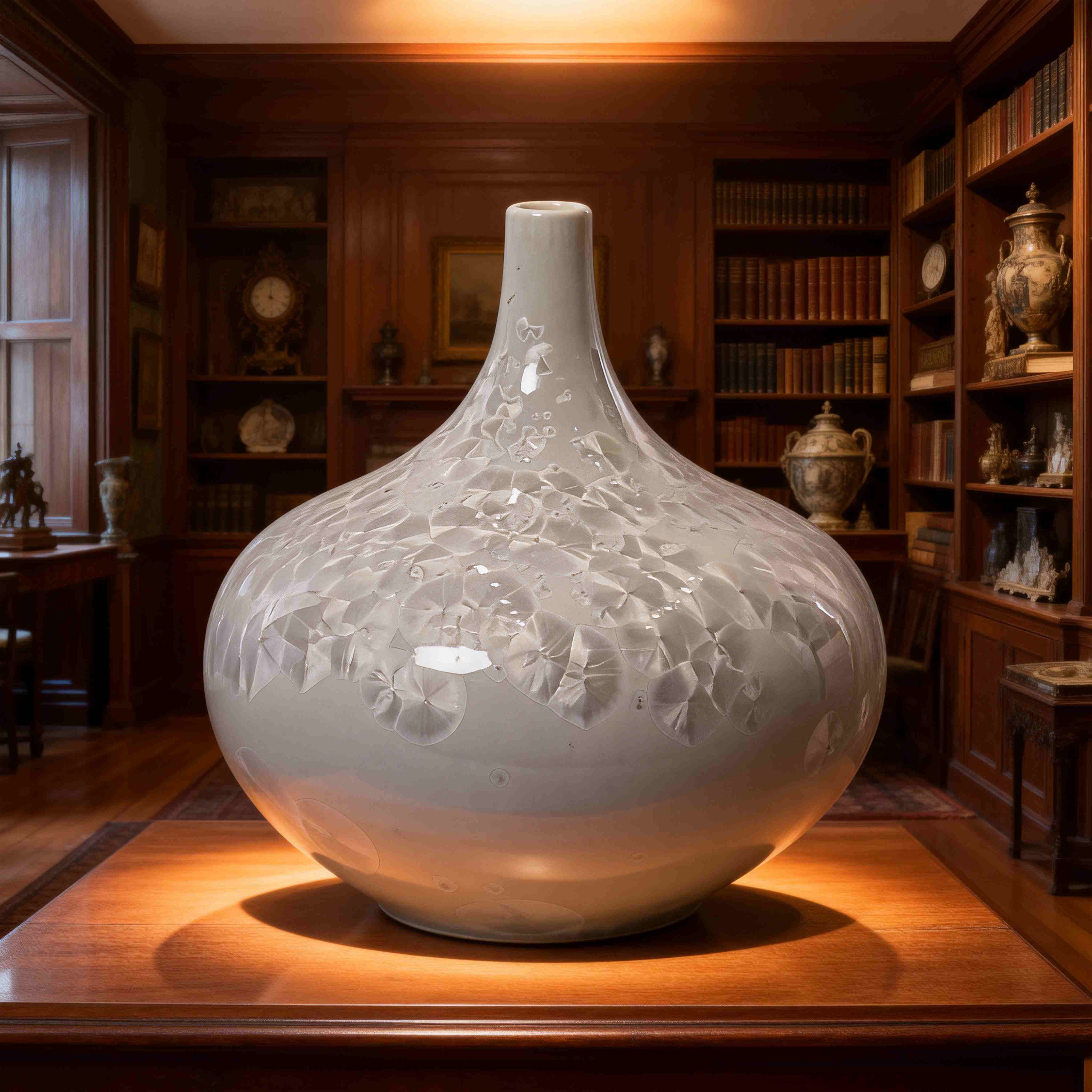 Handmade Jingdezhen Crystalline Pointed Neck Flat-Belly Vase – Unique Ceramic Art, Luxury Gift & Home Display