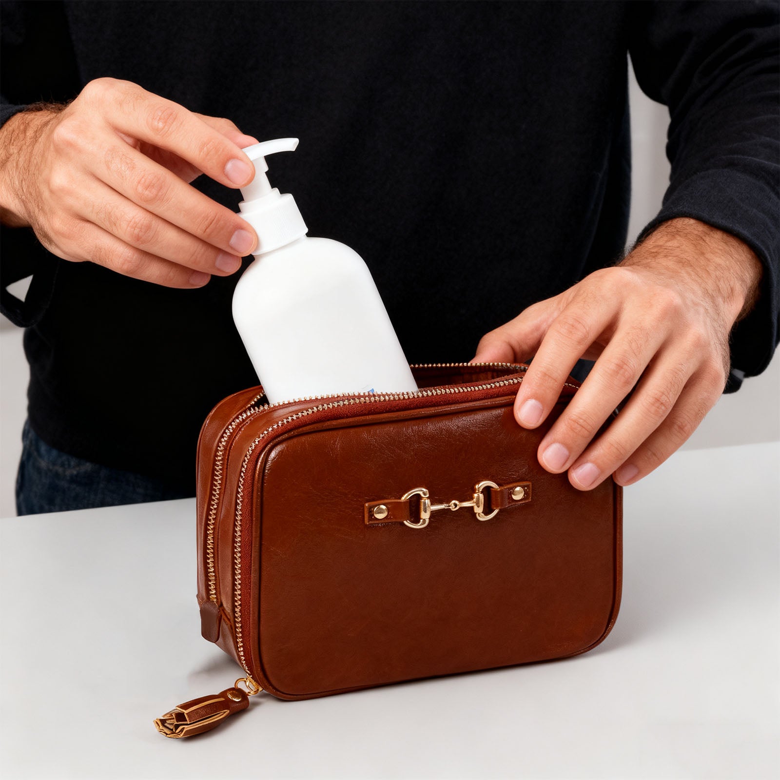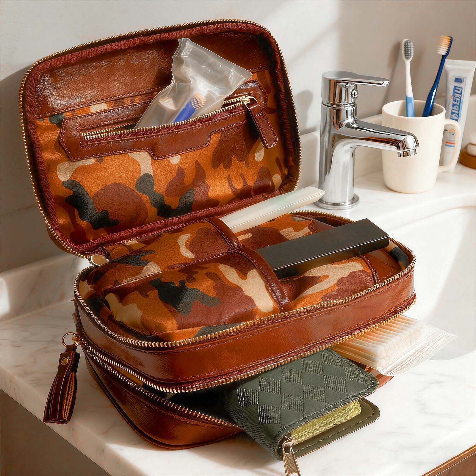 Vegan Leather Men’s Toiletry Bag – Equestrian-Inspired Design with Gold Hardware & Camouflage Lining